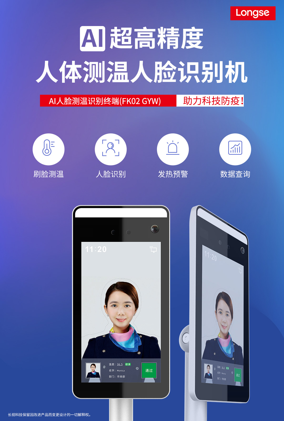 ܫ2-挡拆控防主线重任办事员的沉静,减退其感染病的的风险:AI刷脸温度测量识别终端设备是无打丈温度测量,主线重任办事员凡是在旁一同优化跟踪便可,缩减了主线重任办事员与受检办事员的打丈,缩减各办事员的感染病的风险;