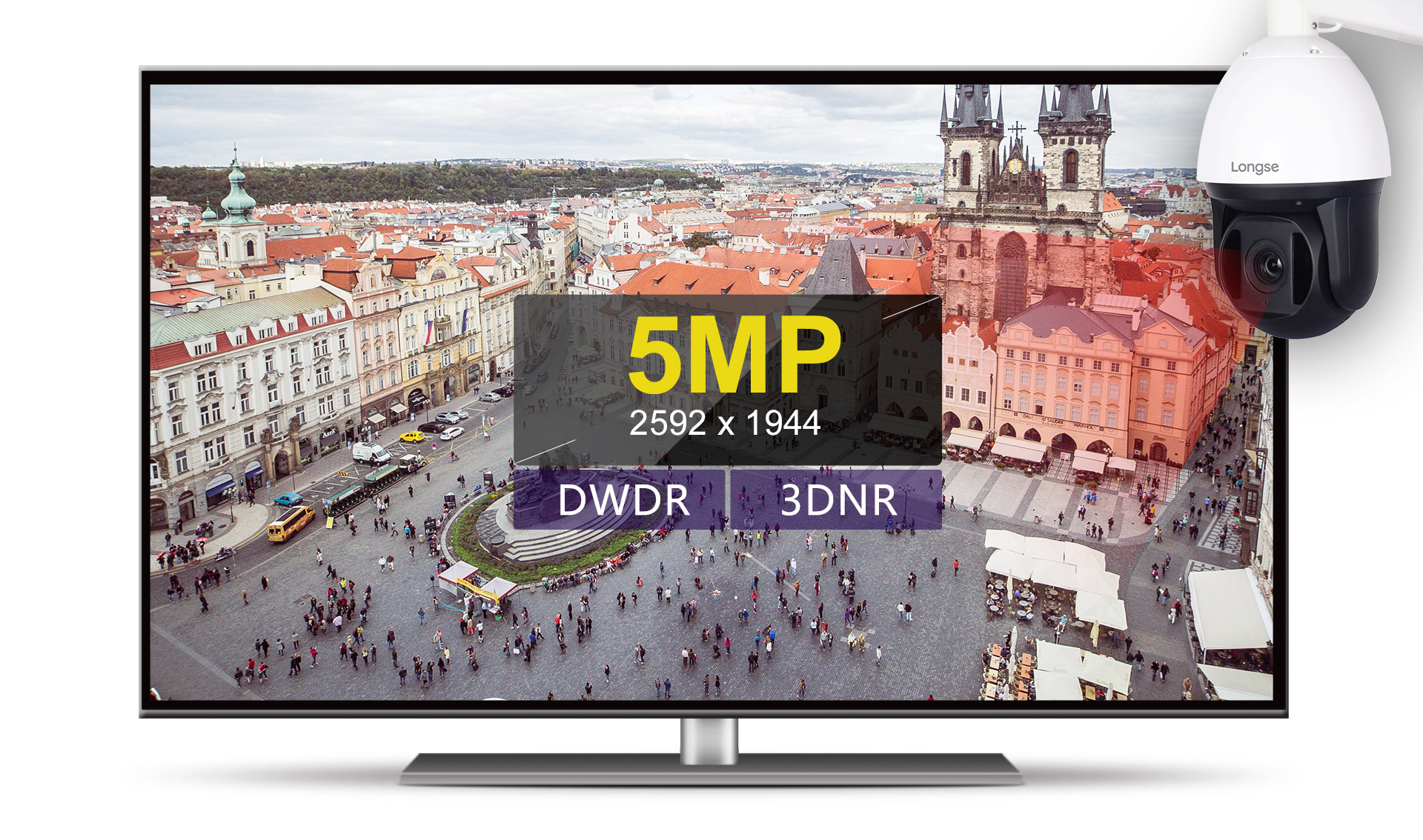 长视500万收集云台摄像机,装备1/2.8英寸Sony低照度CMOS传感器,能以5MP@30fps的高清分辩率输出画面。摄像机撑持DWDR和3DNR的图象手艺,合用于差别场景,让监控结果更天然,无过分暴光与噪点,记实更清楚的细节。